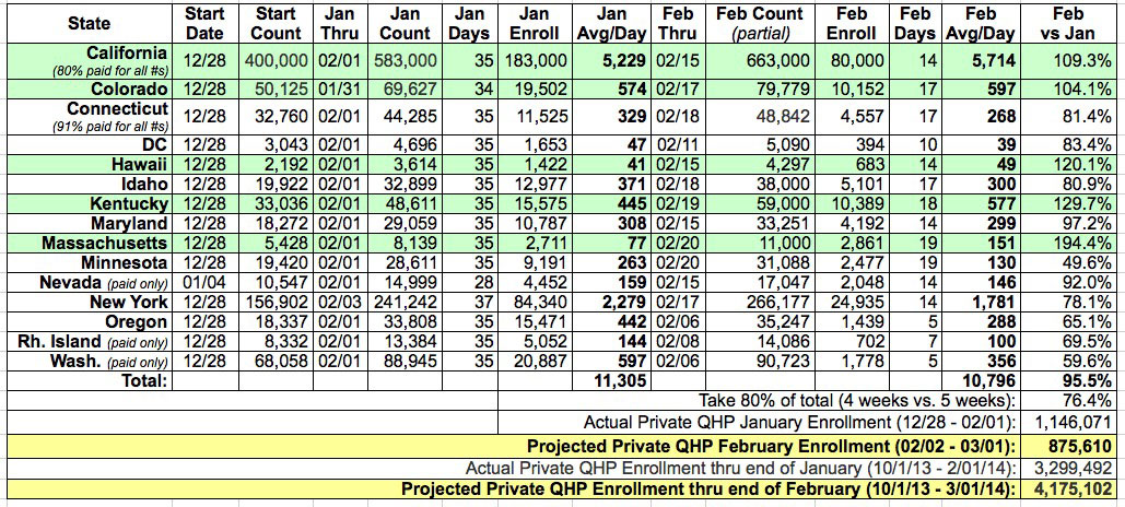 Depending on the actual final February tally, here's the potential final Exchange-based Private QHP Enrollment projections as of the end of the open enrollment period on March 31st: