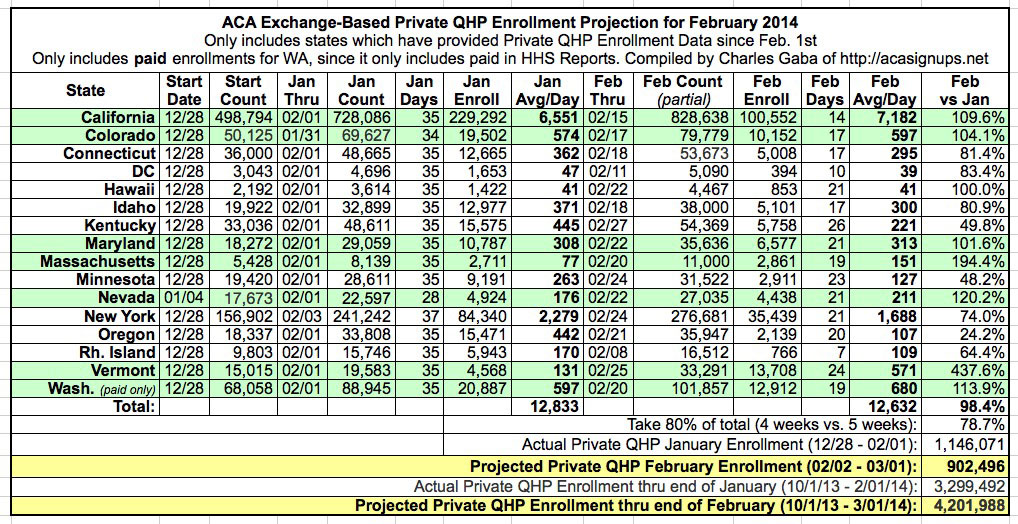 - 902,000 Total Exchange-Based Private QHP Enrollments between 2/02/14 - 3/01/14