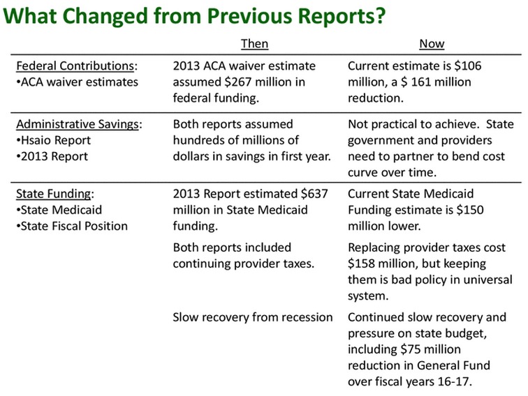 Thanks to Morgan True for the link to this PowerPoint report which explains why VT is pulling the plug on their ambitious Single Payer attempt: