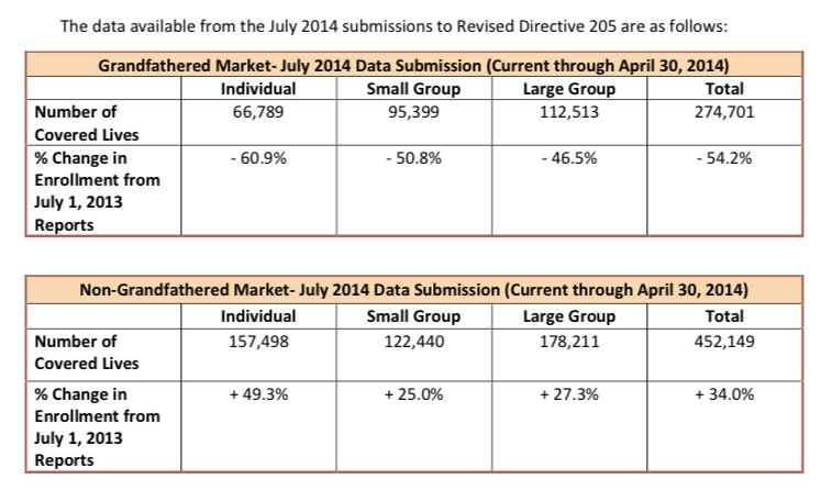 Anyway, for this year, I still have very little off-exchange data so far; only Oregon is providing regular updates on their current off-exchange enrollments, with a few other states reporting them from various points in 2014...which is handy, but doesn't tell us much about the 2015 situation, where things have changed dramatically. Today I can add Louisiana to the list; they've provided me with their off-exchange numbers, but they're only current through 4/30/14, which is basically immediately after the close of the 2014 open enrollment period. With attrition/etc this likely shifted by the end of the year, and 2015 is no doubt very different as well, but it's all I have for now.
