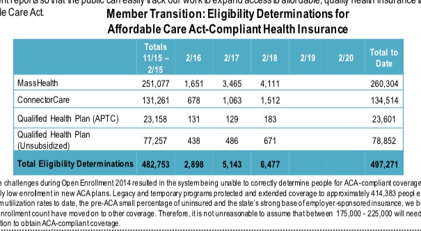 Massachusetts: 132.5K QHPs (estimated); Medicaid breaks 260K