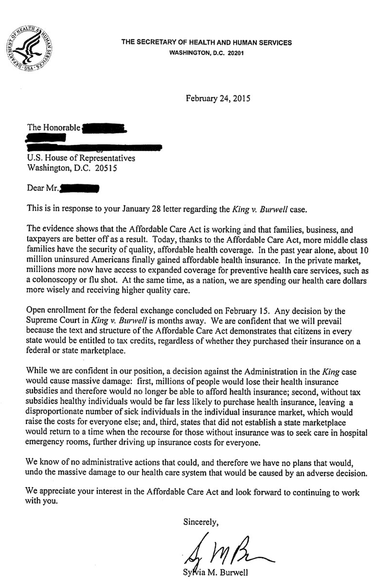 Recently, the House Republicans sent an incredibly "CHOOTZ-PAH" filled letter to HHS Secretary Sylvia Burwell in which they demanded that she tell them what the HHS Dept's "contingency plan" would be in the event that the Supreme Court ends up doing their bidding by tearing away federal tax credits from up to 7.8 million people this summer.