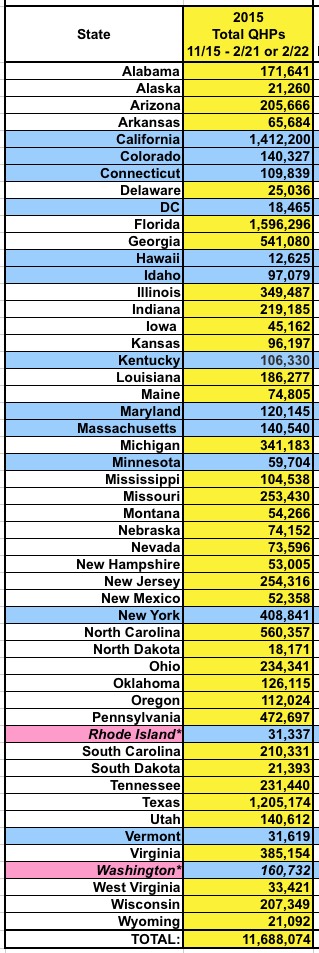 • The official 2/22/15 QHP selection total, according to HHS, is 11,688,074.