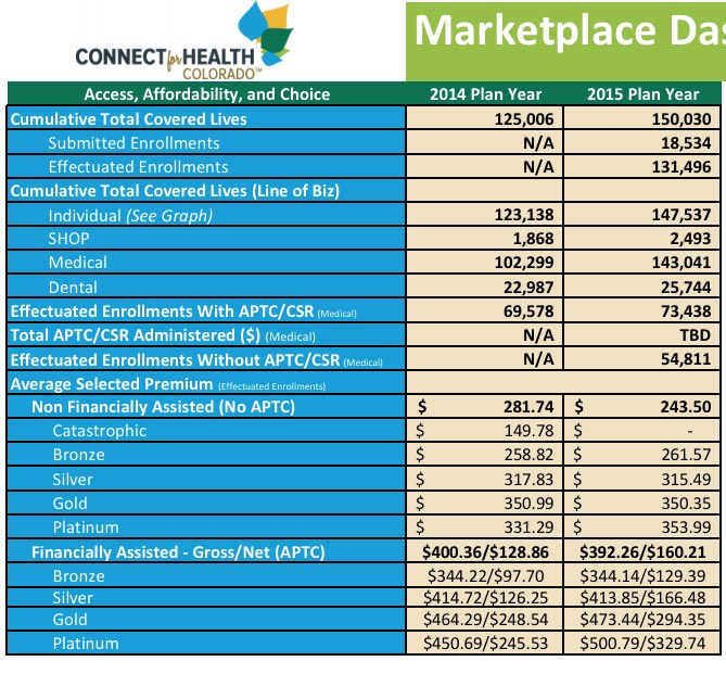 As I expected, this is a slight increase from 122,976 as of 3/31/15, which is actually more impressive since Colorado is one of the 3 states which didn't offer any sort of #ACATaxTime enrollment period after Open Enrollment ended.