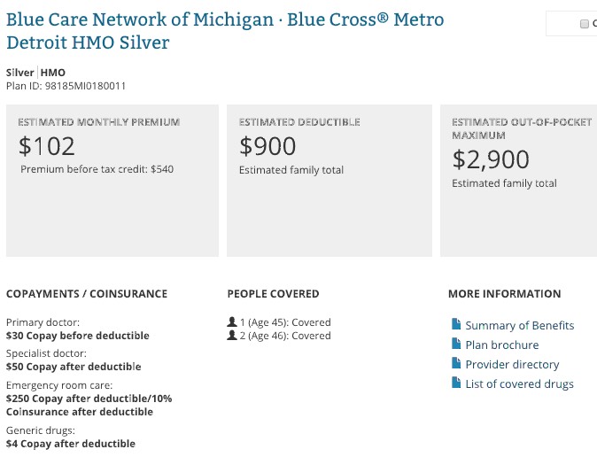 The difference this makes can be striking. Let's say that my wife, son and I happened to have a household income of $30,000/year here in Oakland County, Michigan. Our APTC subsidy would be $437/month, meaning that we could get a Bronze plan from Blue Cross Blue Shield of Michigan without having to pay a dime in premiums, which is awesome!
