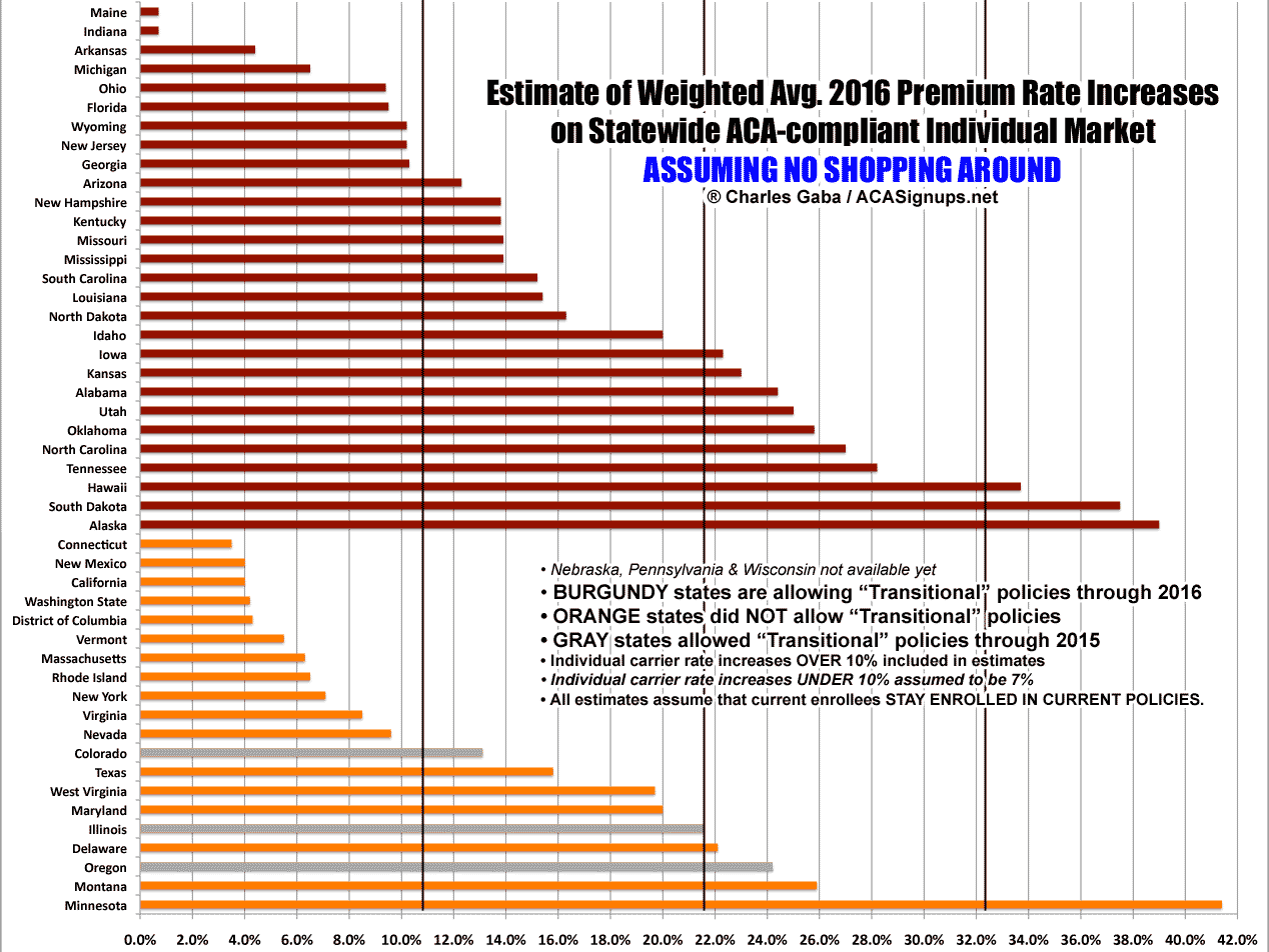 - First, states which are allowing "transitional" plans through next year are definitely seeing higher percentage rate hikes than those which stuck to their guns and discontinued non-ACA compliant policies.