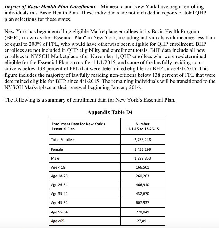 Over 2.7 million people state-wide. Now, I should note that this is not from the NY State of Health exchange, nor the NY Dept. of Insurance...but it is from the official HHS Dept. ASPE 2016 Enrollment Report, and it's pretty straightforward, so i'm inclined to think that it isn't a typo or a misunderstanding.