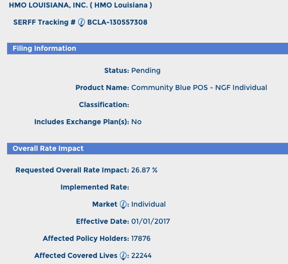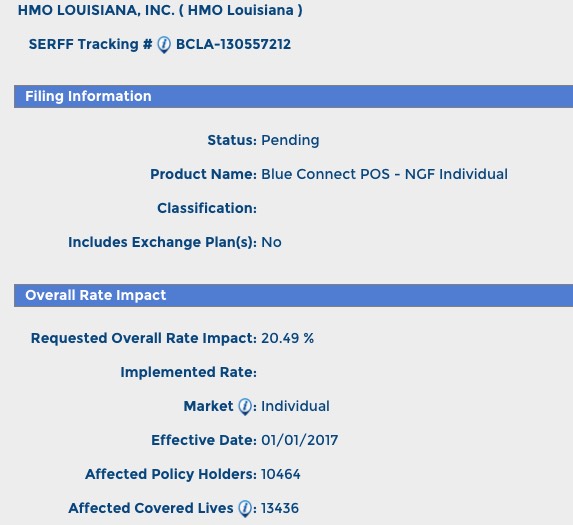 With this in mind, here's how things stack up in Louisiana for the ACA-compliant individual risk pool rate hike requests: