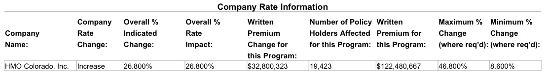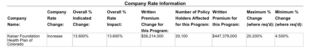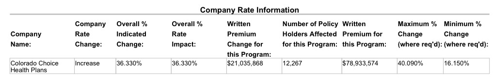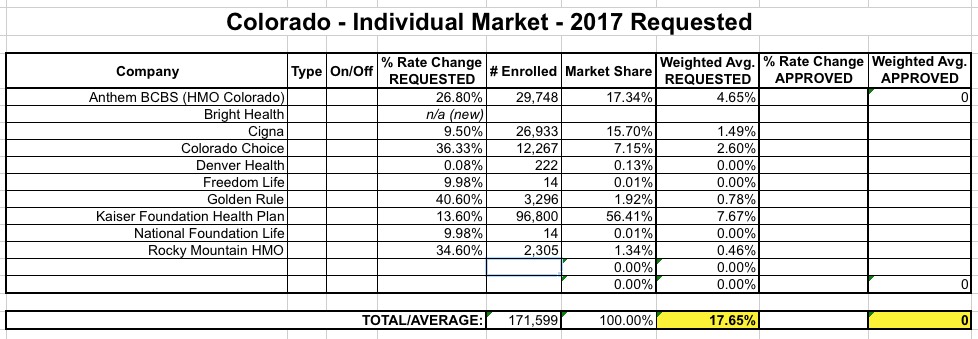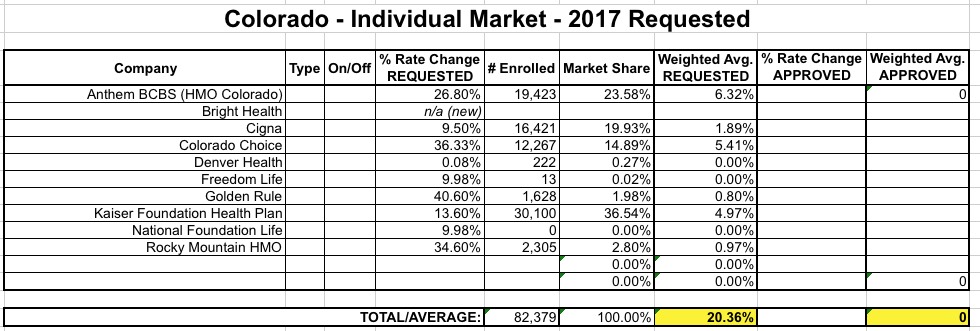 Anyway, assuming the above market share ratios are fairly close (and no one's missing), Colorado is looking at weighted average requested rate hikes of 20.4%.
