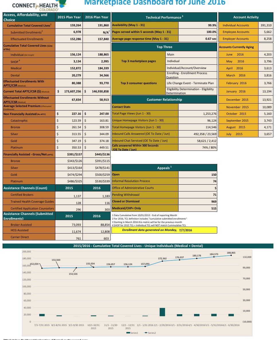 I've been trying to figure out how to read Connect for Health Colorado's enrollment reports for months now, and I thought I had finally cleared things up last month....only to have that rug completely yanked out from under me by CMS's Q1 Effectuation Report, which stated that C4HCO only had 108,311 people actually enrolled in effectuated healthcare policies as of 3/31/16 rather than the 115,890 they seemed to be reporting at the time...which, combined with other confusing numbers, made the May report's 143,430 figure seem awfully suspicious.