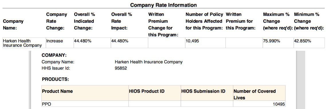 Harken Health, a United subsidiary, is seeking the next highest increase, at an average of 44 percent.