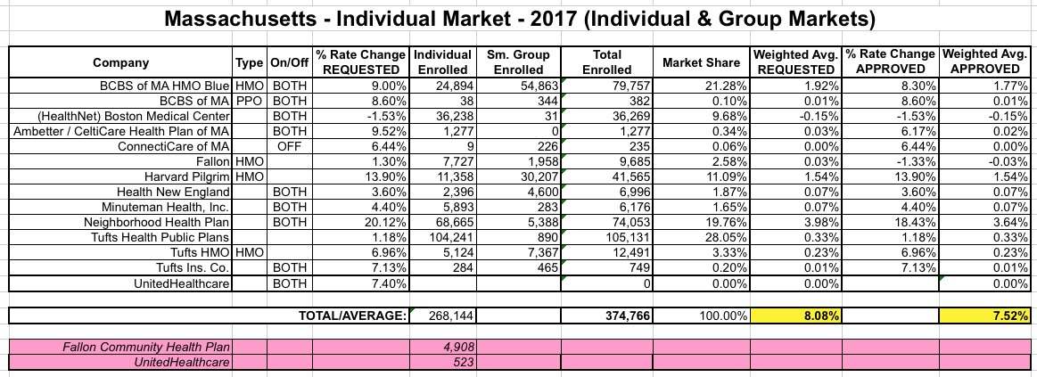 Still, for the record, here's the latest...in four states (Iowa, Indiana, Maine & Tennessee) I've just updated the requested and/or approved average increases. In the other four (Massachusetts, Montana, North & South Dakota) I've added the approved rate hikes as well.