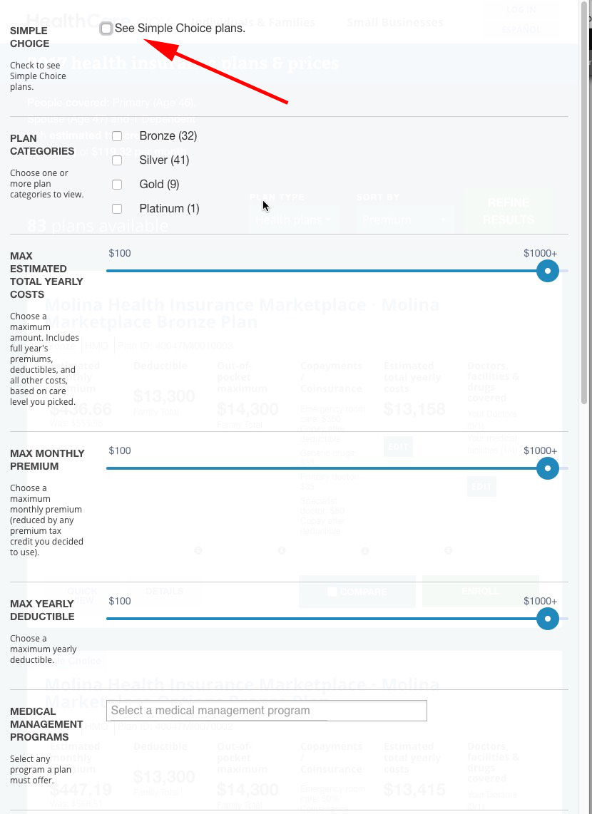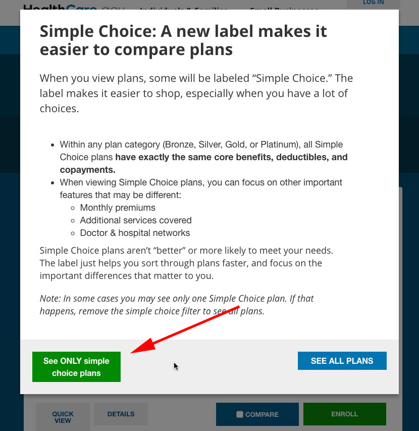 There's also the brand-new Simple Choice option, which lets you strip away all the clutter and view just the "standardized" plans available in your area: