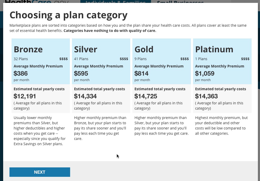 They've also added a new pop-up which lists the average premium and total costs for all plans by each metal level as a guide: