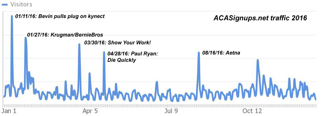 I was a bit obsessive about the Kentucky gubernatorial race in the fall of 2014, given GOP candidate Matt Bevin's campaign promise to kill off the successful, perfectly running and beloved kynect ACA marketplace for no particular reason (along with killing off ACA Medicaid expansion). Needless to say, he won in spite of (or possibly because of?) these campaign promises. In the end, he did kill off the kynect exchange, although kynect is still operating at a minimal level. It answers questions, re-routes traffic to the HC.gov federal exchange and, I believe, re-routes traffic for enrolling people in Medicaid. As for Medicaid, Bevin ended up not killing it off after all, although he is attempting to gunk up the works with a modified waiver version of the program (similar, I believe, to Indiana’s waiver-version). Anyway, this particular blog entry itself didn't really add much new info to the subject, but for whatever reason it caught the eye of MSNBC host Christopher Hayes, who tweeted out a link to it, generating a bunch of traffic.