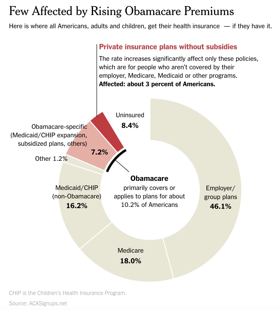 - Finally, there’s a bunch of uninsured people who either earn too much to qualify for ACA subsidies or who are ineligible for subsidies because their employer has a qualifying policy which they haven’t taken.