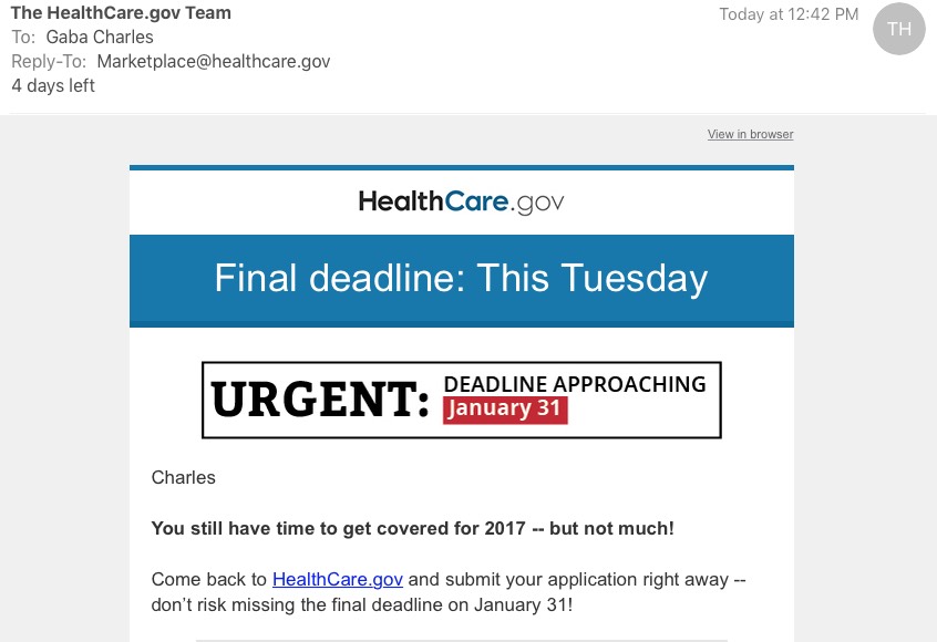 Open enrollment ends in a couple days. #GetCovered for 2017! https://t.co/gy7nWbLSe4 pic.twitter.com/KKhe5K4dmu