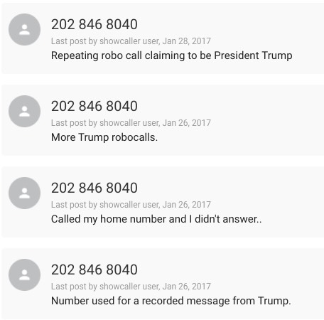 UPDATE: As suggested in the comments, I should make it more clear that I have no proof that these calls are actually connected to or approved by Trump or his administration; it could be some third-party outlet or some scammers who recorded his rantings from the campaign trail or whatever. If that's the case...well, never mind, although the rest of this post still holds true.