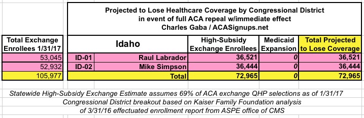 • UPDATE 2/19/17: HAWAII AND IDAHO now added. (After weeks of having to track down the individual congressional districts by rolling over the appropriate part of the map--which wasn't easy in many districts due to gerrymandering--it looks like the KFF has added the actual raw source data, making it much easier to finish up the remaining states!)