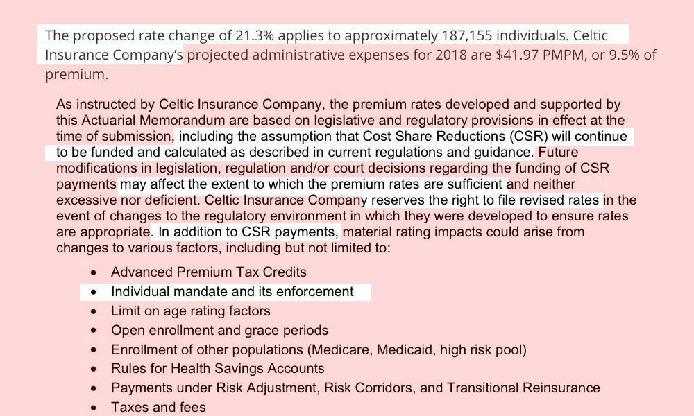 With those caveats in mind, it looks like the Lonestar State is seeking 20.2% average unsubsidized rate hikes if CSR payments are made, or 32.5% increases if they aren't: