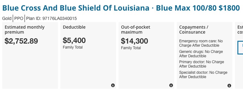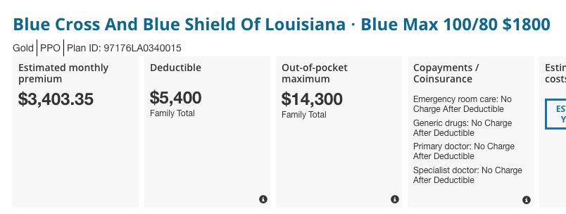 That's a BCBSLA Gold PPO plan costing $1,173/month, or $14,076/year. Not even close to $40,000.