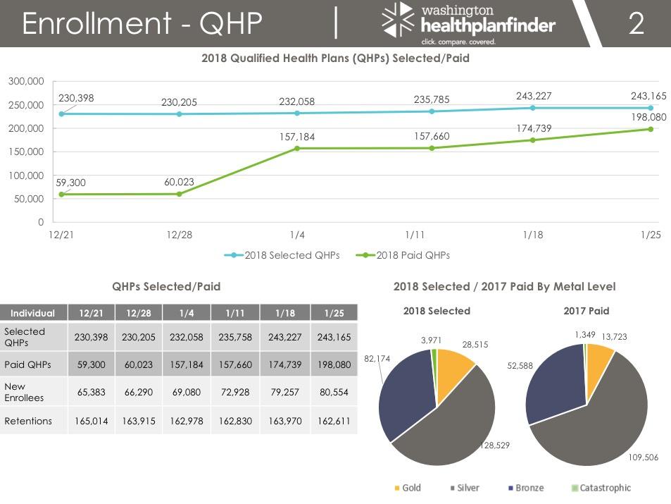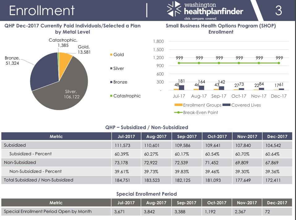 That's right...it's time for another state-level Datapalooza!® The first two slides come from the Feb. 2nd board meeting Open Enrollment Report; the rest come from the "Open Enrollment For 2018 Plan Year Performance Dashboard" report, which is a bit different; it actually runs through January 26th instead of January 14th for whatever reason. so some of the numbers are slightly different.
