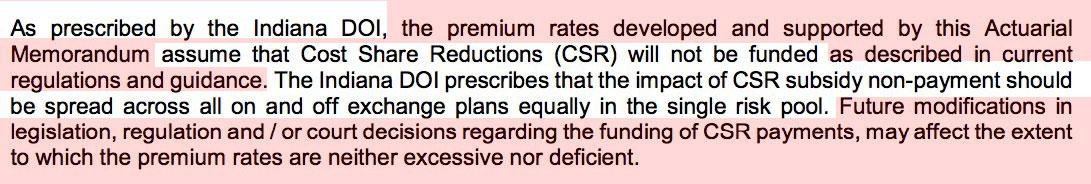 I also don't see any indiciation as to whether or not Indiana carriers will be Silver Loading (or even Silver Switching) next year to deal with CSR load costs. I'll update this if/when I hunt down the actual rate filings.