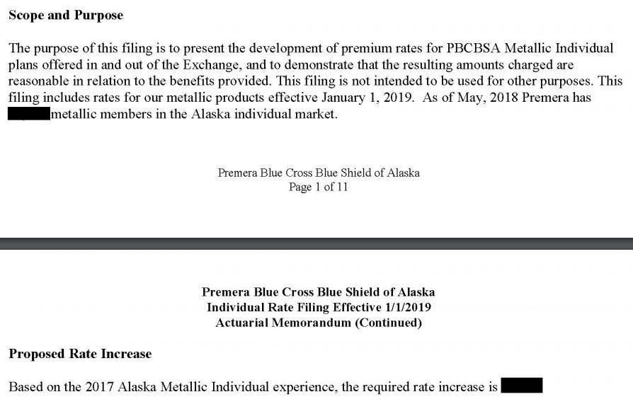 Unfortunately, some carriers submit multiple filings for different lines of business even if they both use the same "Actuarial Memorandum" to justify the incresae...and often times the memo itself is redacted, with the critical data (covered lives, percent increases, dollar amounts, etc.) blocked out, making it kind of useless for my purposes. Such is the case with Premera Blue Cross Blue Shield, the sole ACA market carrier in Alaska. Thanks in large part to the state's successful reinsurance program, they're dropping rates by 7% on most of their policies, and by 10.3% on the rest...but I don't know the relative portion of each, so I can't be sure what the weighted average of the two is. The second listing is for Health Savings Account plans only, so I'm assuming the bulk of their enrollees have the first types of policies, which suggests roughly an 8% overall premium drop.
