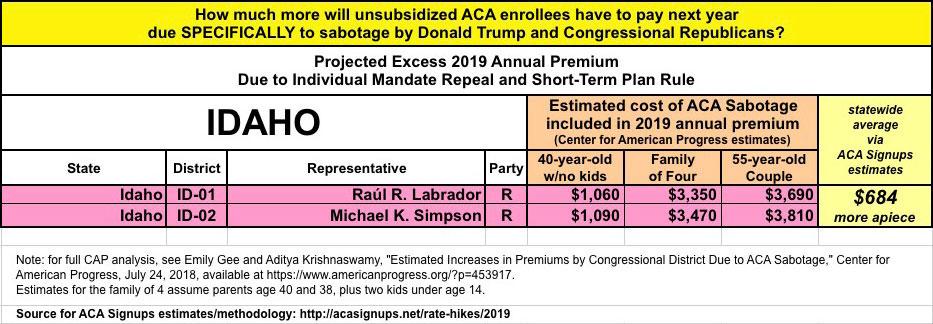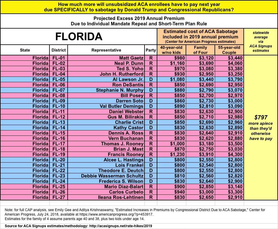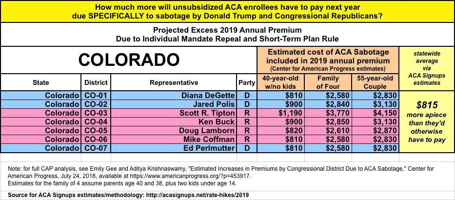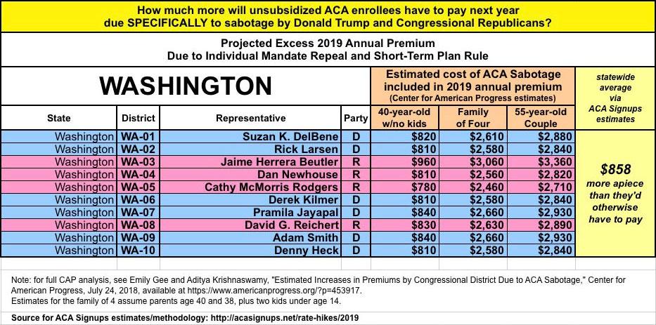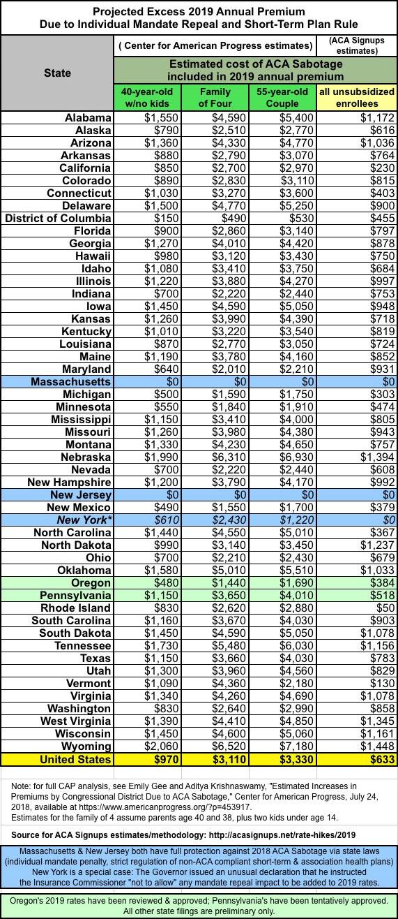 As they also know, last year and again this year I've expanded on this by breaking out the portion of the annual rate increase which can be tied directly to sabotage efforts by the Trump Administration and Congressional Republicans. For 2018, this boiled down to roughly 17 points of the total nationwide increase being sabotage-related. It varied greatly by state, carrier and plan, but nationally, I estimated that without last year's ACA sabotage efforts, average premiums would have gone up around 11% instead of around 28%.