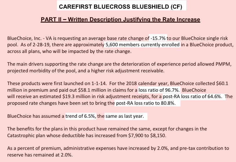 Virginia is traditionally the first state to release their preliminary individual (& small group) market healthcare policy rate changes, but this year the state insurance regulatory body delayed the initial deadline by a couple of weeks. As a result, three other states (Maryland, Vermont and Oregon) beat Virginia to the punch this year.