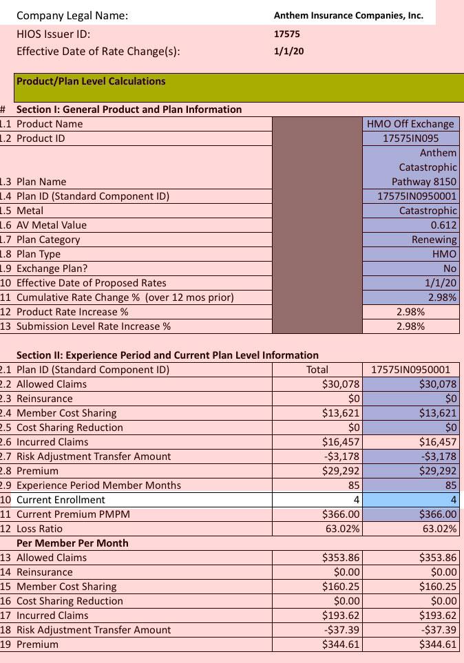 I'm not sure why the Indiana Dept. of Insurance says the average requested rate increase is 9.0%...I get 10.2% when I plug in the raw numbers. It's possible that I'm missing something, however, so I'll defer to them.