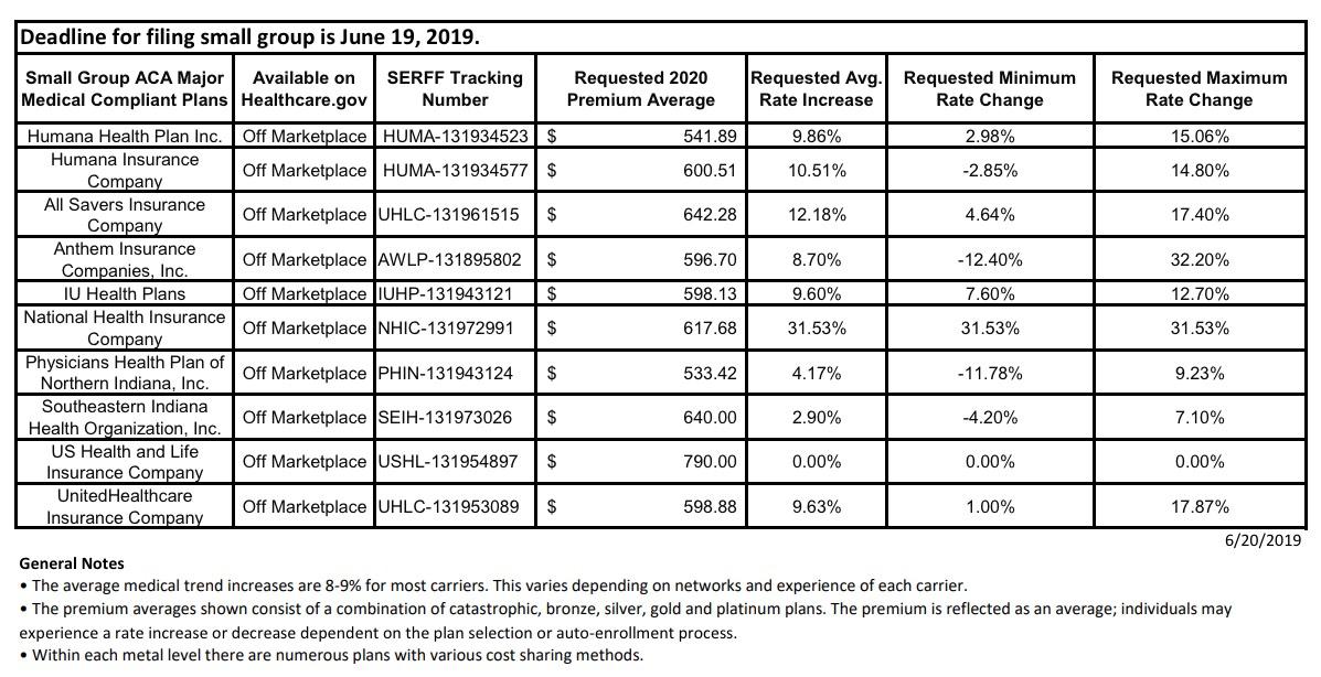 Indiana: PRELIMINARY 2020 ACA Exchange Premium Rate Changes: 9.0% increase (10.1%?)