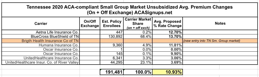 Here's Tennessee's Small Group market: