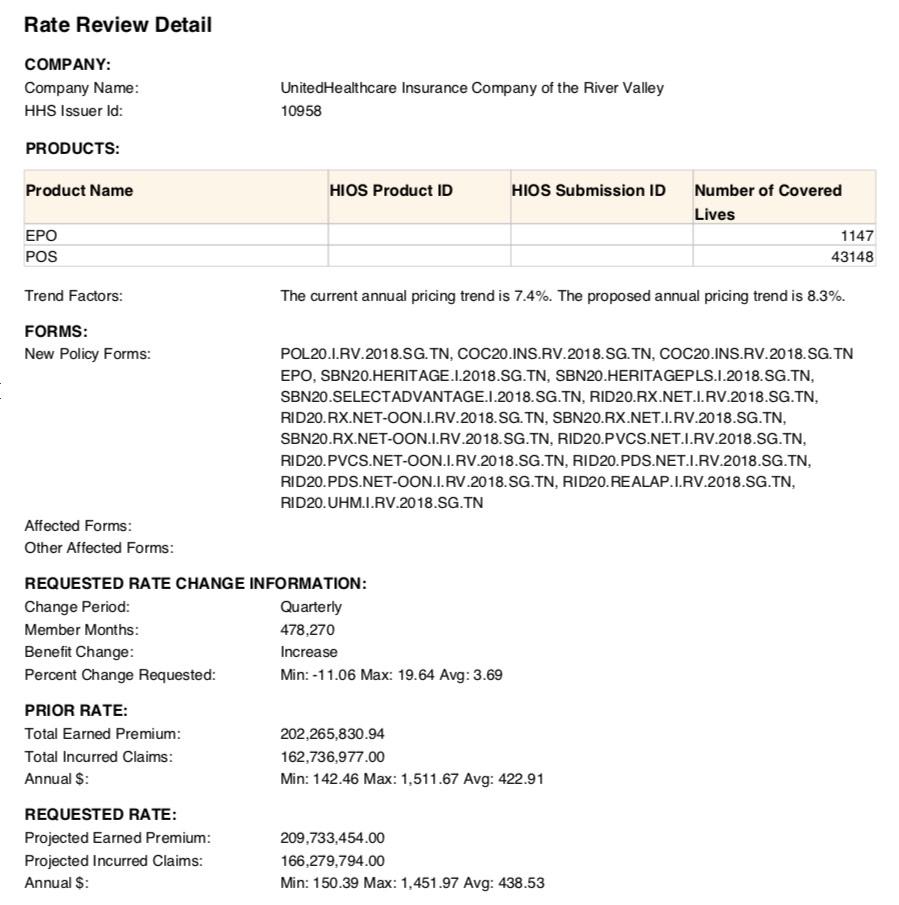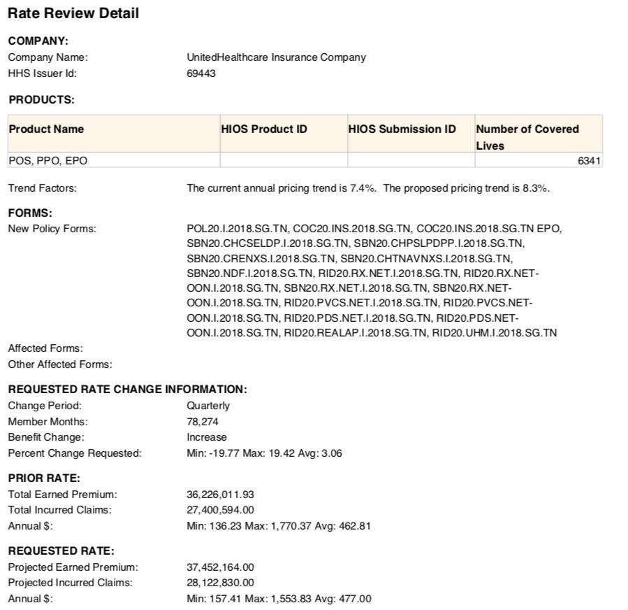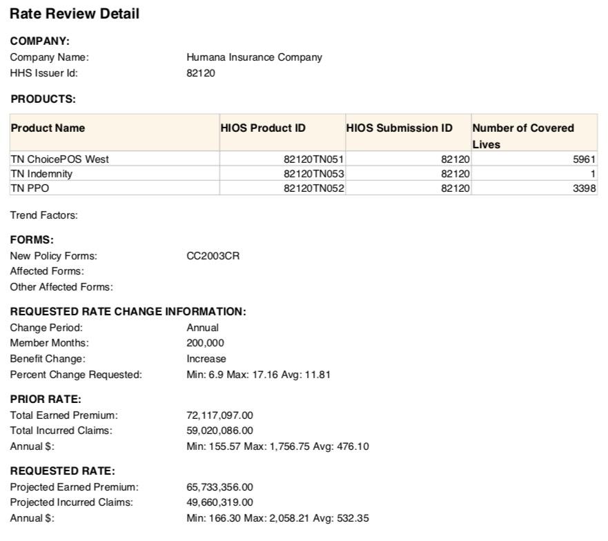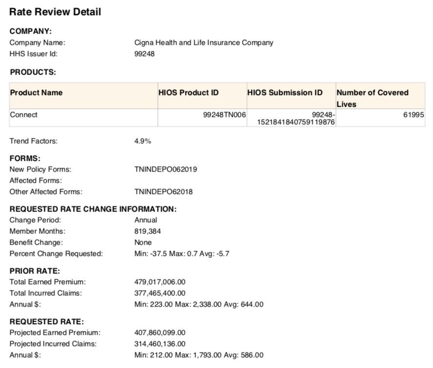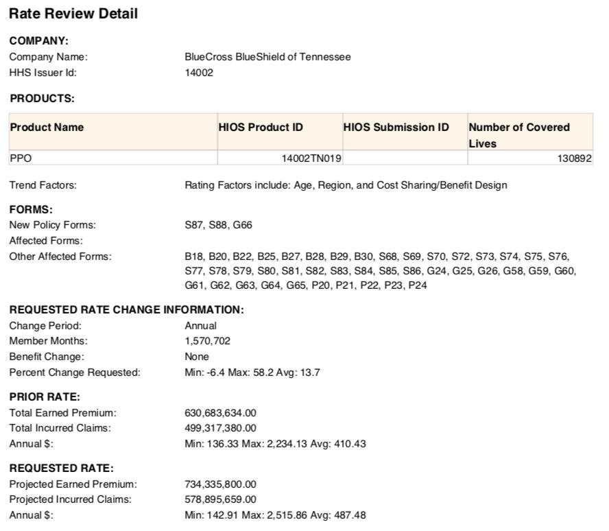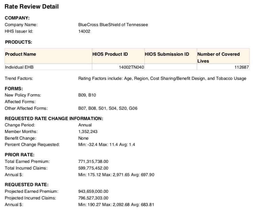 - BlueCross BlueShield of Tennessee: Expanding coverage into Nashville, Memphis and surrounding counties. Proposed 2020 rate request seeking an average increase of 1.4%.