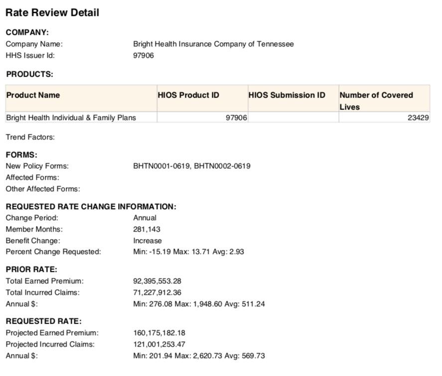- Bright Health: Coverage continues in Knoxville, Memphis and Nashville areas; rates increase an average of 2.93%.