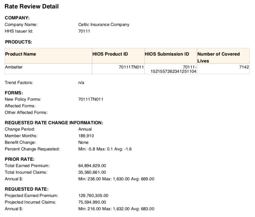 - Celtic/Ambetter Insurance: Coverage continues in Chattanooga and Memphis and expands into Nashville and Knoxville; rates decrease an average 1.6%.