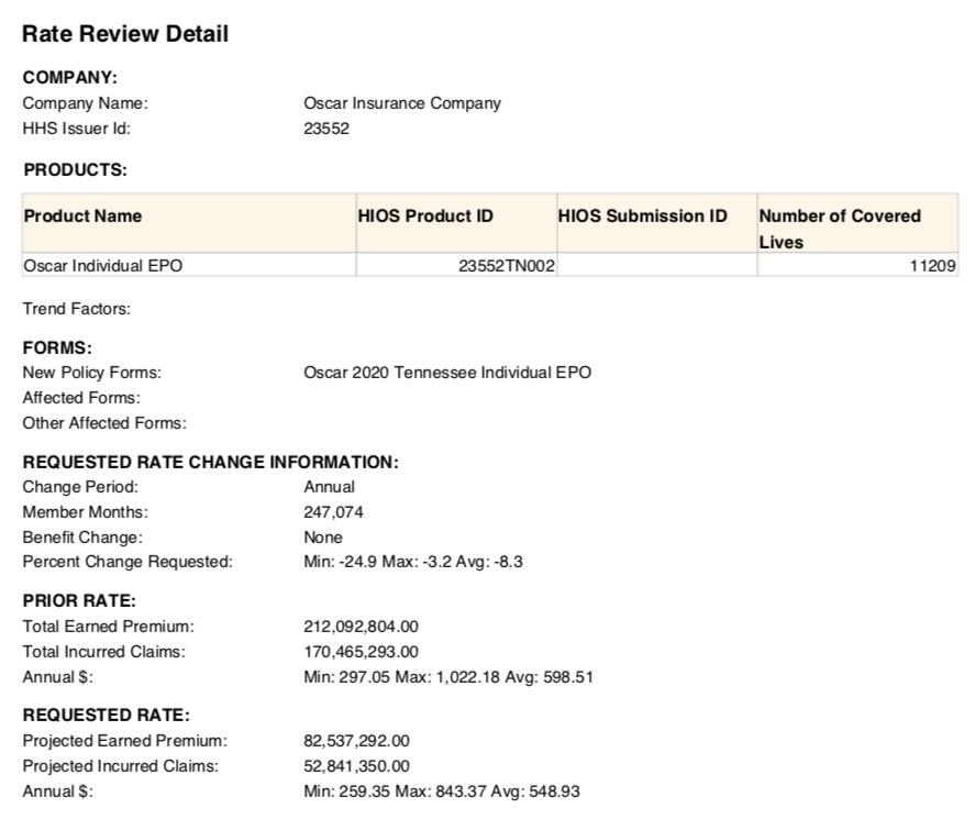 - Oscar Health: Coverage continues in Nashville and Memphis; rates decrease an average of 8.3%.