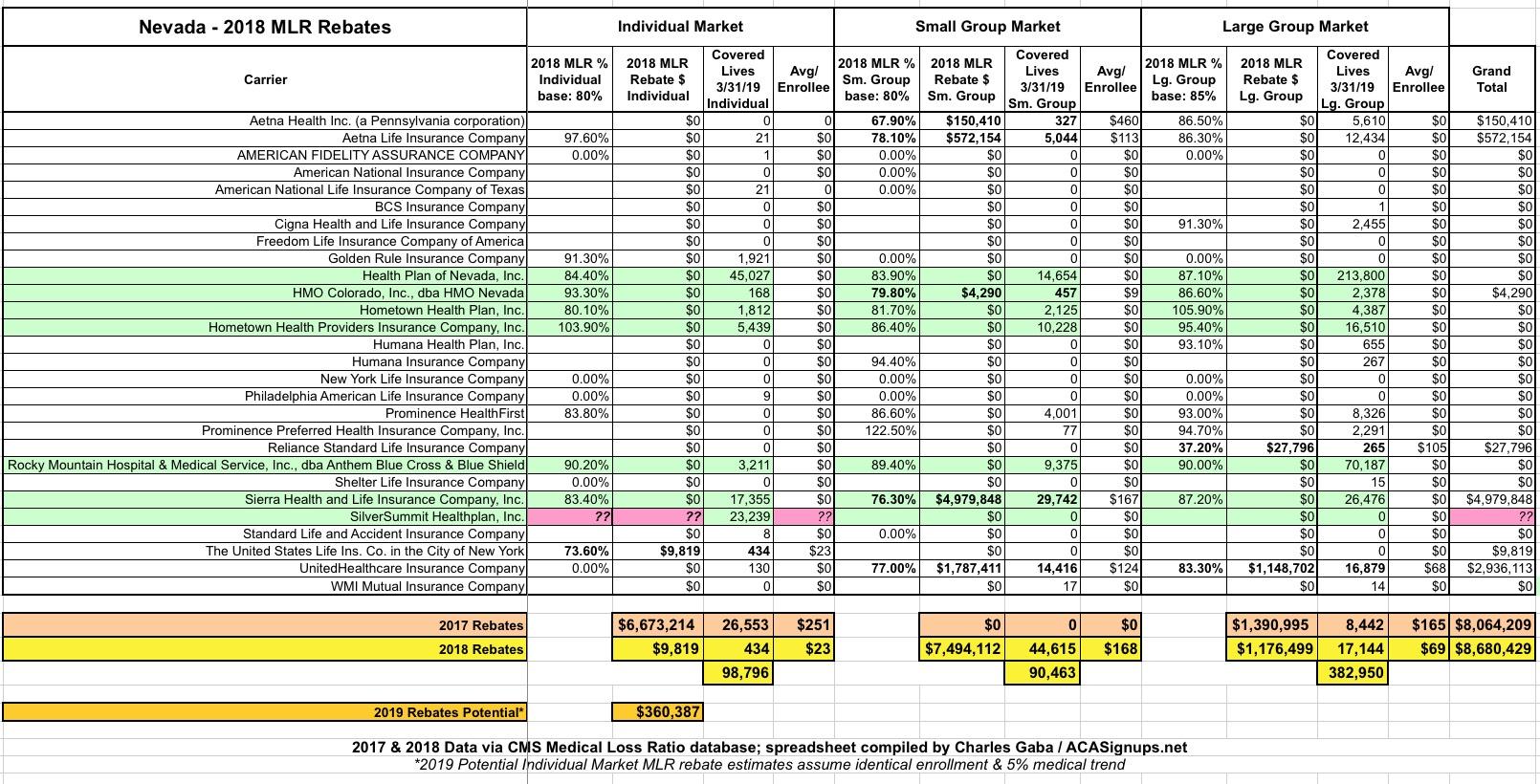 Exclusive! Nevada: 2018 MLR Rebate Payments (& potential 2019 rebates)