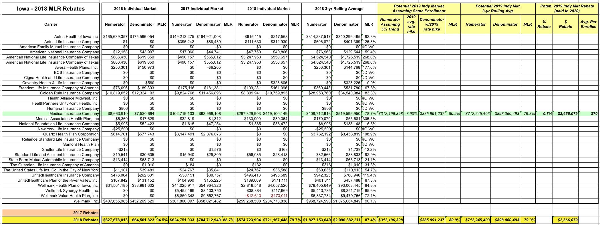 Iowa: $2.4 million in MLR rebate payments going to 49,000 enrollees