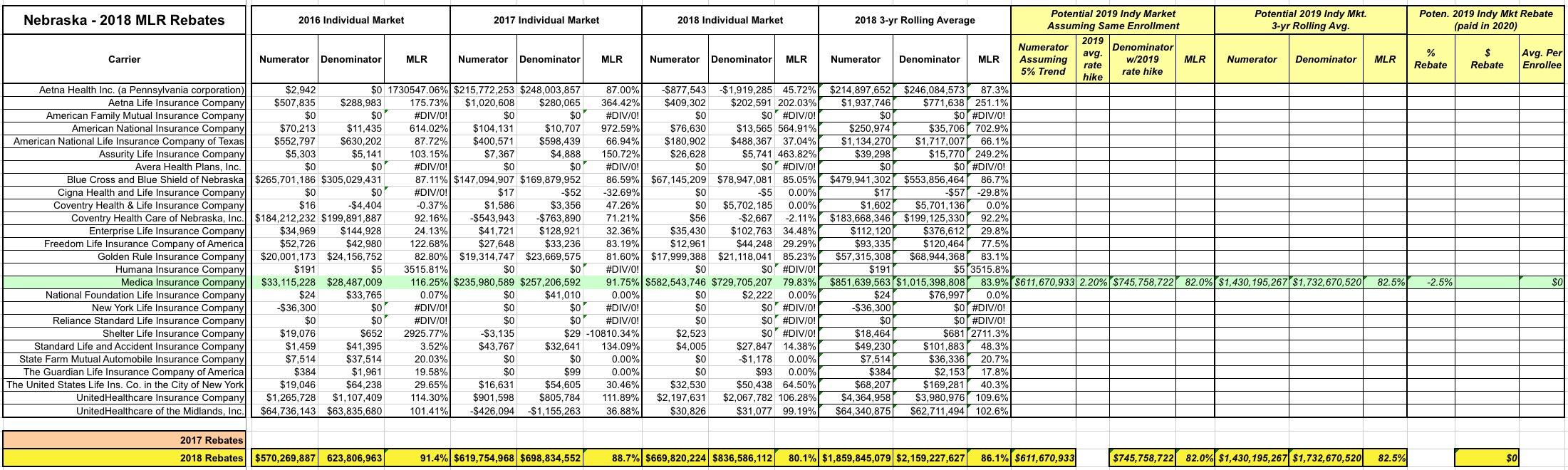 AGAIN: There's absolutely no guarantee that things will play out this way. It's possible that none of these carriers will make MLR payments next year, or only some of them will, or the amounts will be smaller. These 2019 projections are pure speculation on my part based on a number of big assumptions.