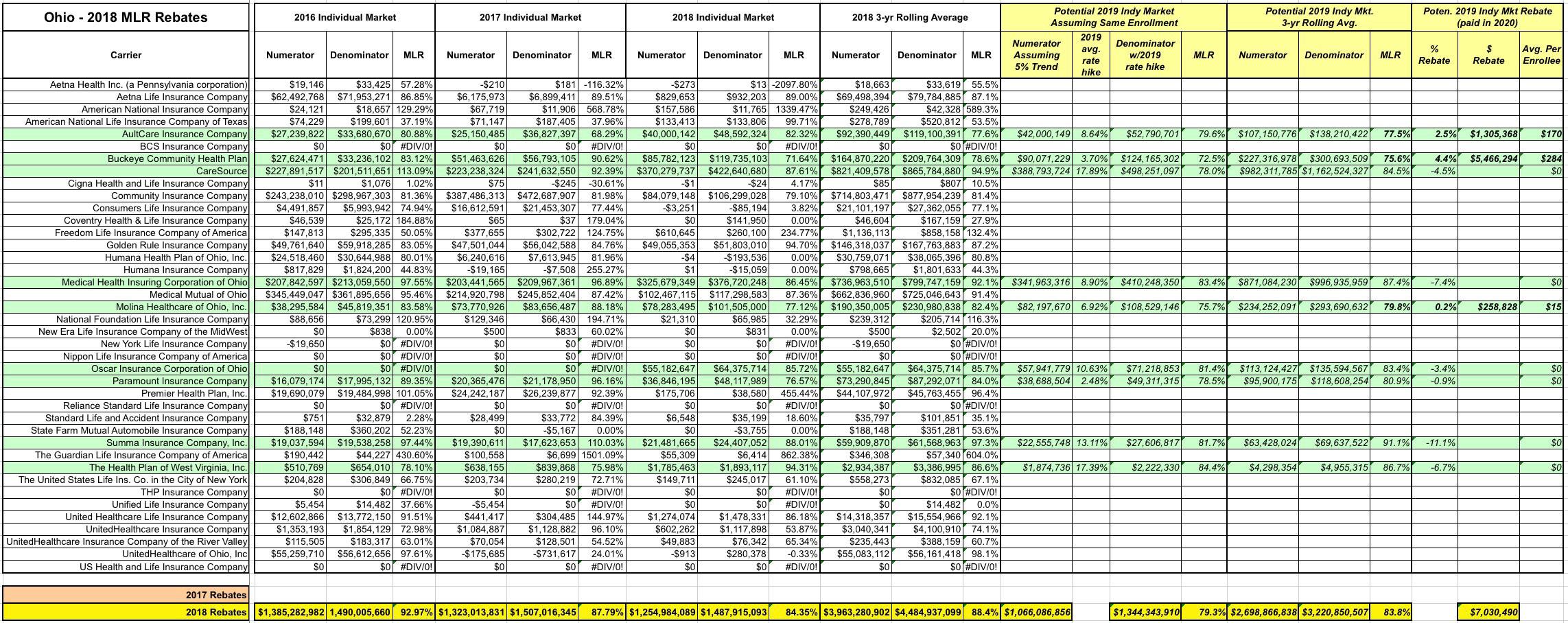 Ohio: $4.6 million in MLR rebates this year; Indy Market alone could see up to $7 million next year