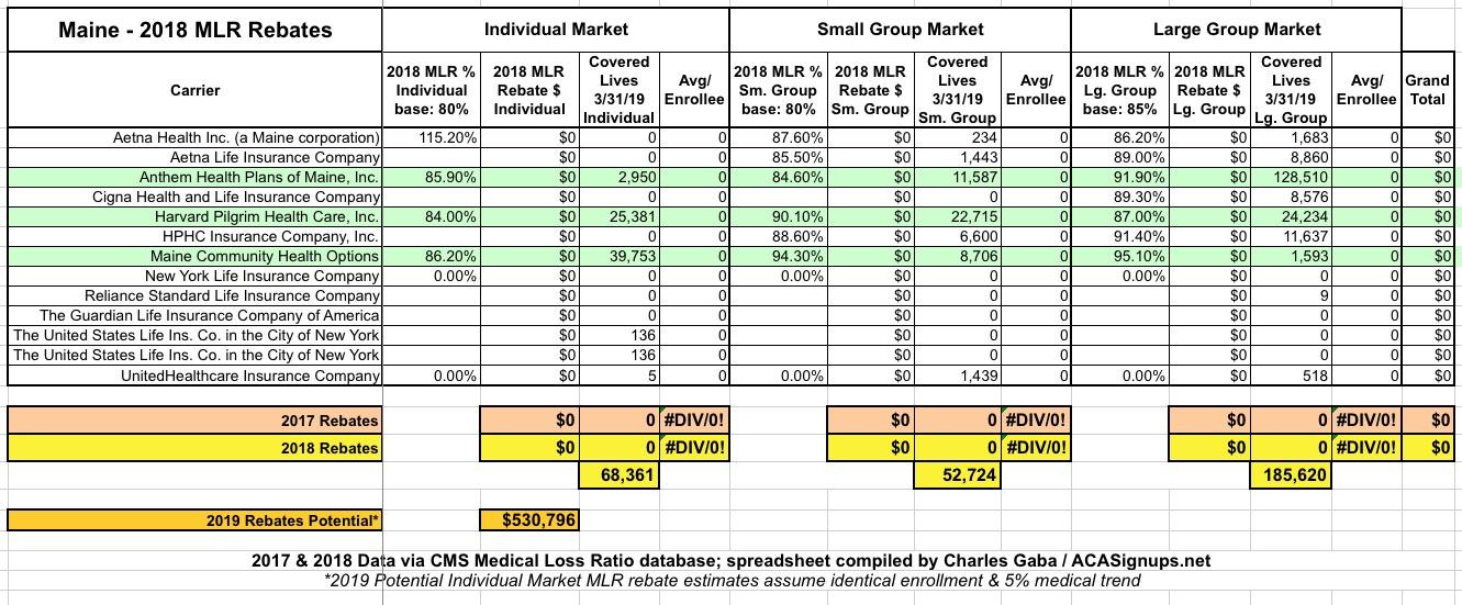 Maine: The most boring MLR rebate table for at least two years running