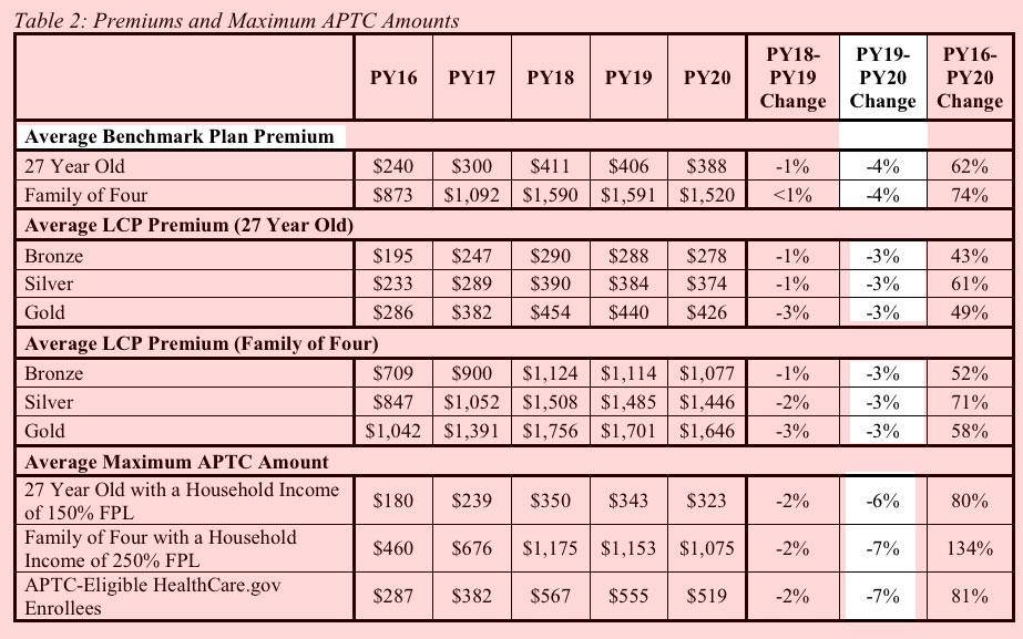 Hell, CMS even lays out this problem in their own press release bragging about how "premiums are 4% lower" for 2020. See this table?
