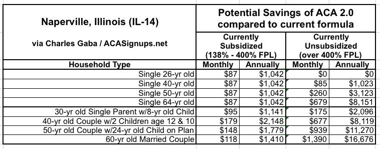 Under ACA 2.0, again, they'd pay no more than 8.5% in premiums, reducing their net premiums from $1,870/month down to as little as $480/month, a reduction of a whopping $16,600/year.