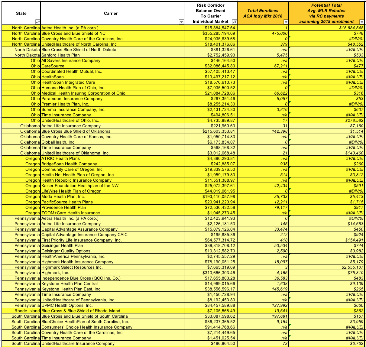 Note that I'm only focusing on the individual market here. Around $1.3 billion in RC payments are owed to small group carriers as well, but the Indy market is already a pretty big project. I might go back and do the same for the sm. group market as well in the future.