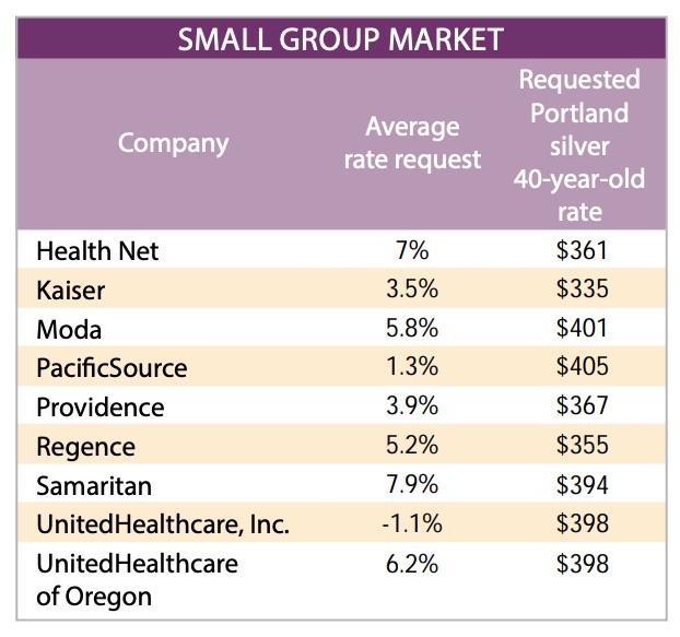 In the individual market, six companies submitted rate change requests ranging from an average 3.5 percent decrease to an average 11.1 percent increase, for a weighted average of 2.2 percent. In the small group market, nine companies submitted rate change requests ranging from an average 1.1 percent decrease to an average 7.9 percent increase, for a weighted average of 3.9 percent. See the attached chart for the full list of rate change requests.