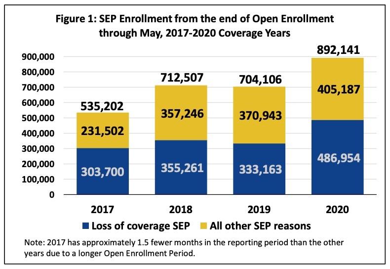 • 2020: 892,141 total SEP enrollments from 12/16 - 5/21 = 5342/day over 167 days