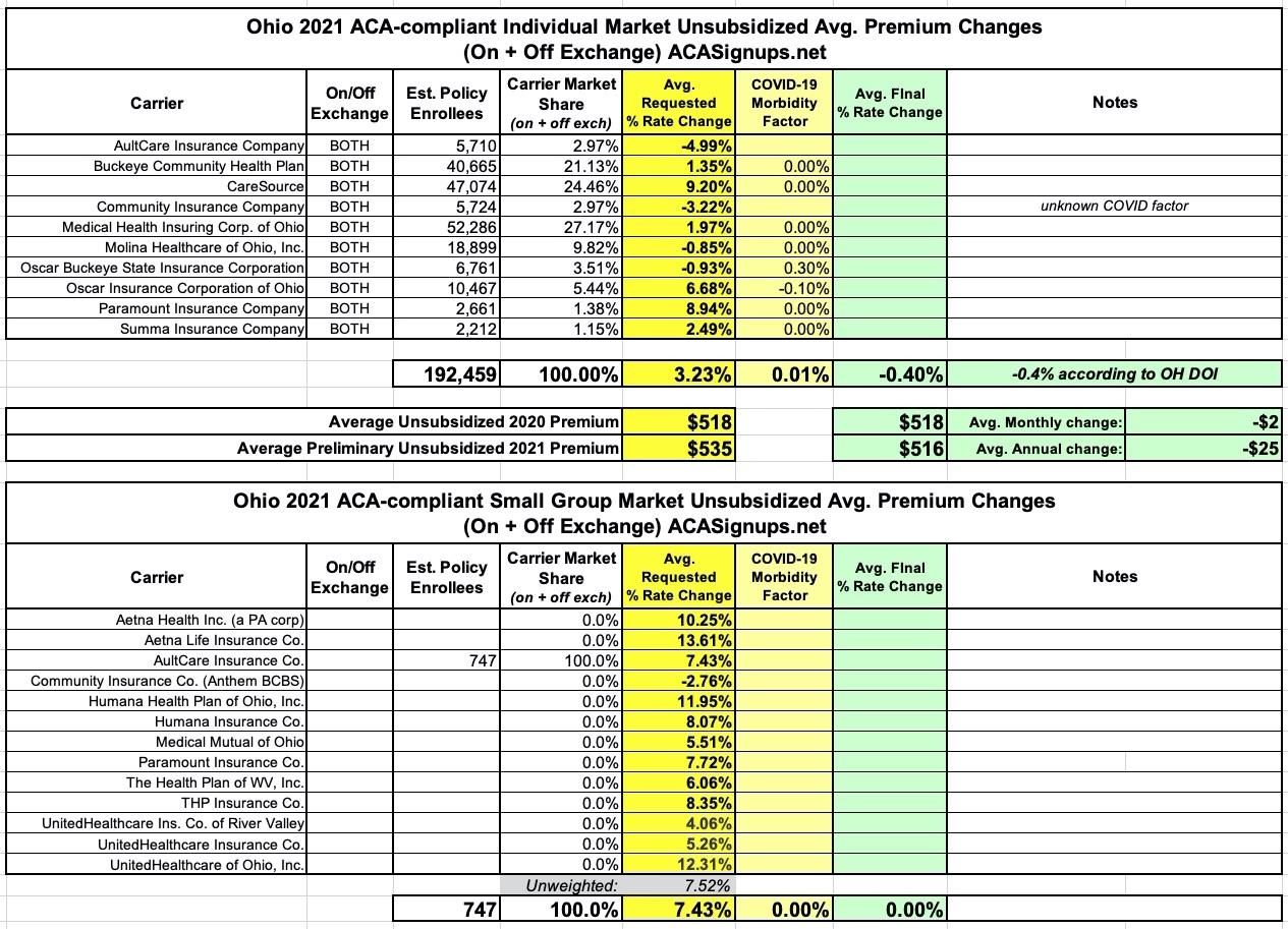 Ohio: Preliminary 2021 avg. #ACA premiums: +3.2% or -0.4%??