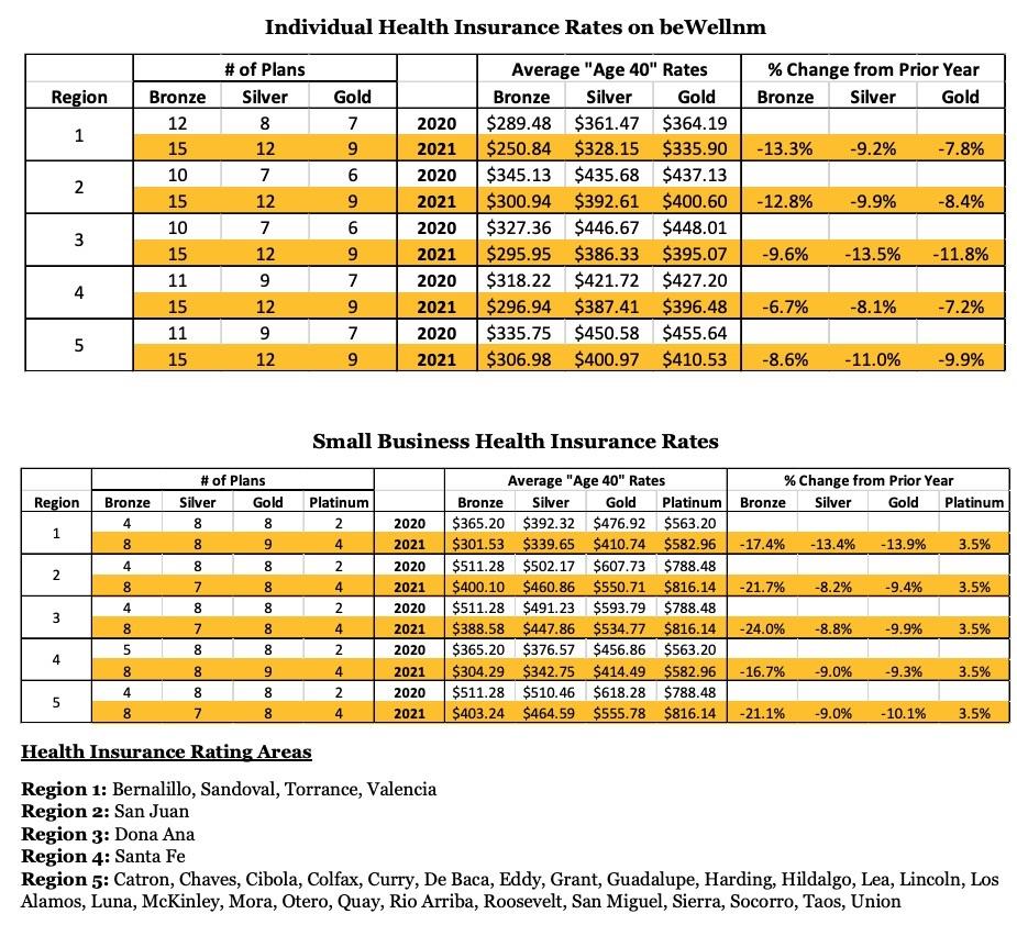 “After a rigorous review of health insurance filings, our office is pleased to report that premiums are going down in 2021,” said Superintendent Toal. “Not only are rates decreasing, but New Mexico will have more health plans competing in the marketplace than ever before”