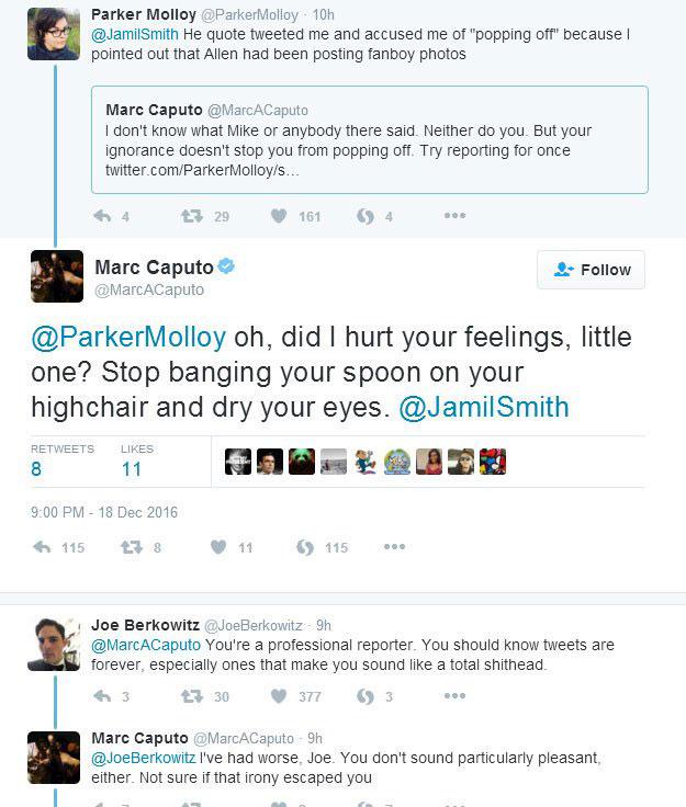 I'm addressing this Open Letter to Florida-based Politico reporter Marc A. Caputo, but the truth is there are hundreds of journalists out there who it could apply to as well. I know parts of it seem like a run-of-the-mill flame war between two people on Twitter, but I think there's a much deeper and more disturbing point here given Caputo's profession and status as a reasonably respected journalist.